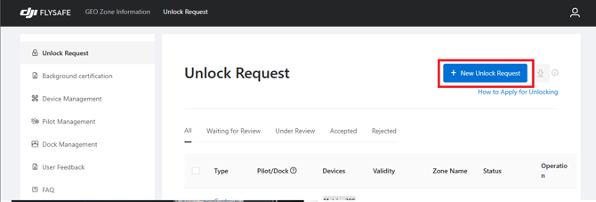 | Apply for Unlocking | Visit DJI Fly Safe Portal |