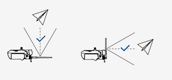 Ensure the flat surface of both antennas is facing the drone—not the tips.